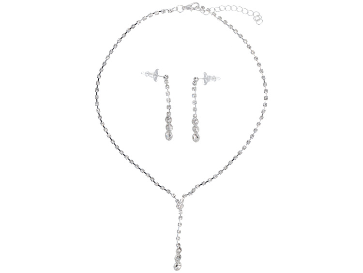 Pohledný je spojení minimalistického lesku s výrazným charakterem. V sadě je kravatový náhrdelník a náušnice na šroubek, zdobené po celé délce zirkony, které krásně odrážejí světlo při každém pohybu. Barva stříbrná.