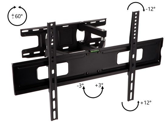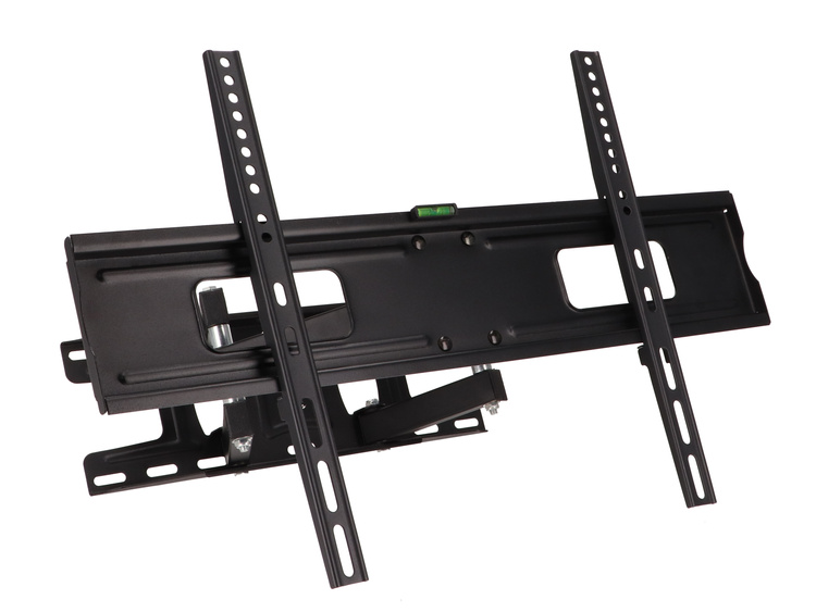 Nový, nepoužitý nástěnný držák určený k montáži jednoho televizoru o hmotnosti do 35 kg (maximálně 70 palců). Maximální rozteč šroubů - 600 x 400 mm. Držák má vodováhu, která usnadňuje správné nastavení obrazovky.