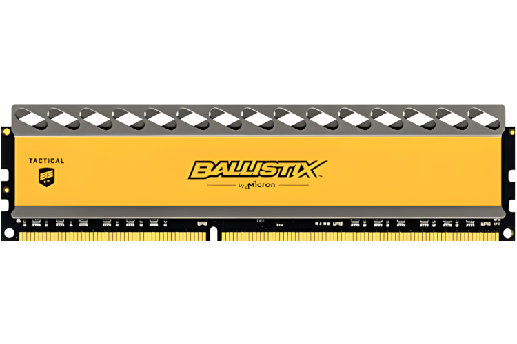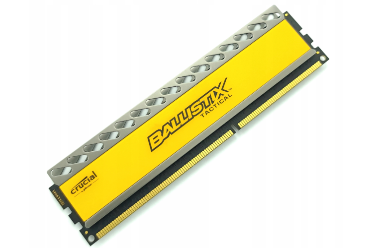 Paměť RAM Crucial Ballistix Tactical 8GB DDR3 1866MHz CL16 zajišťuje vysoký výkon a stabilitu. Ideální pro hry a práci, vybavená chladičem, který zajišťuje efektivní chlazení a dlouhou životnost. Ilustrační fotografie.