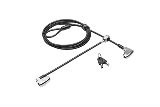 Nové duální bezpečnostní kabely určené pro elektronická zařízení s místem pro připojení bezpečnostního zařízení Kensington. Kabely se prodávají v kompletu s klíči.Ukázkové fotografie.