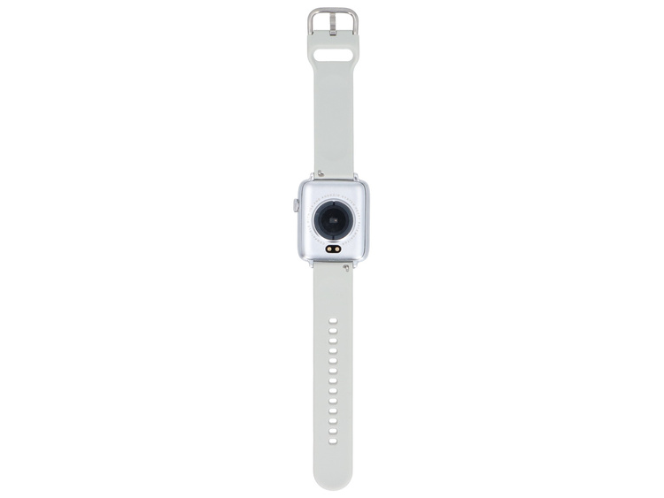 Smartwatch GlacierX Rhea Silver - model s obdélníkovým pouzdrem a funkčním korunkou. Měkký, silikonový pásek umožňuje pohodlné přizpůsobení hodinek zápěstí, a četné tréninkové funkce a vodotěsnost třídy IP68 zdůrazňují jeho sportovní charakter.
