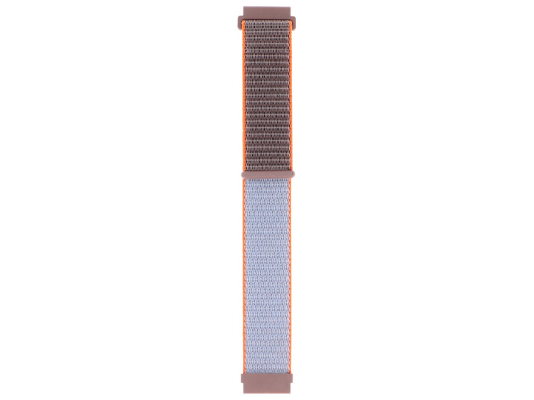 Nylonový pásek na smartwatch GlacierX v barvě hnědo-modrošedé, s kontrastními oranžovými okraji. Produkt nový, zabalený v originálním obalu. Šířka 22 mm, zapínání na suchý zip.