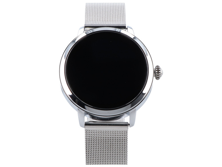 Chytré hodinky kombinují elegantní stříbrný vzhled s milánským mesh páskem, který umožňuje přesné nastavení na zápěstí.