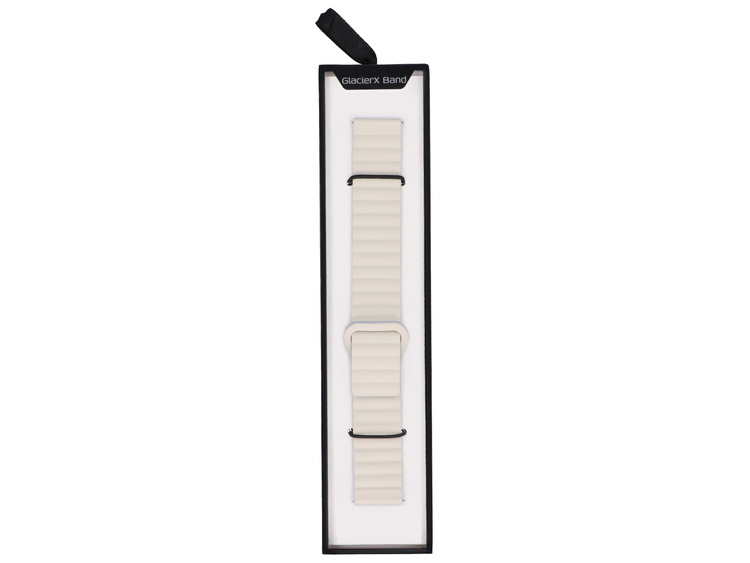 Sada tří pásků GlacierX s teleskopickým uchycením. Nylonový v tmavě modré barvě, silikonový v oranžové barvě s magnetickou motýlovou sponou a silikonový magnetický krémově-modrý. Produkty nové, šířka 22 mm.