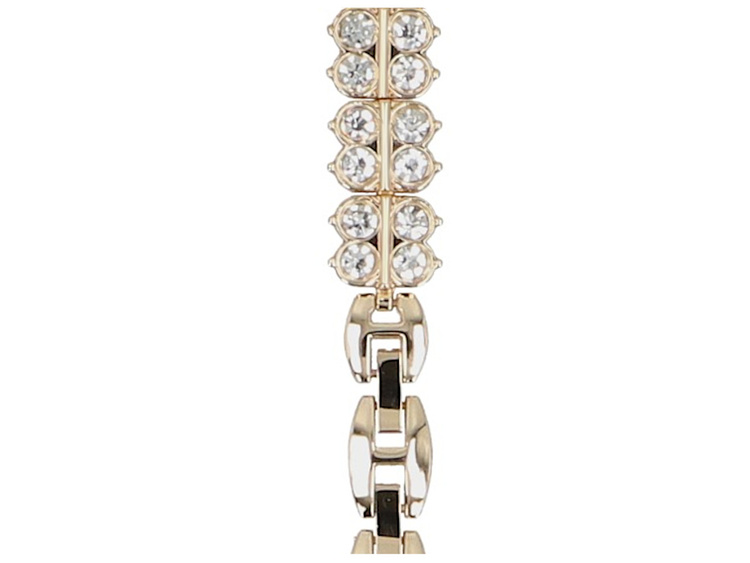 Řetízkový náramek GlacierX určený pro Apple Watch 38/40/41mm. Barva zlatá, zdobený zirkony. Délka nastavitelná čtyřmi rozepínacími články. Produkt nový, zabalený v originálním obalu.