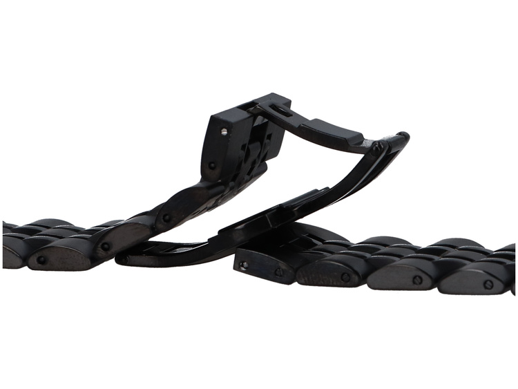 Náramek GlacierX určený pro Apple Watch 38/40/41mm, zapínaný na motýlovou sponu. Vyroben z článků různé šířky, barva černá,