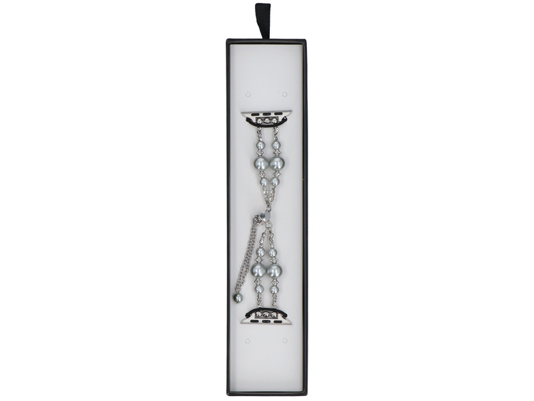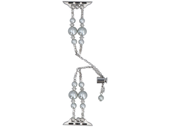 Nový náramek na smartwatch GlacierX Slider Clasp Double Chain Pearl Bracelet Lunar Shine pro Apple Watch 38/40/41mm Stříbrný
