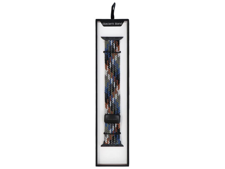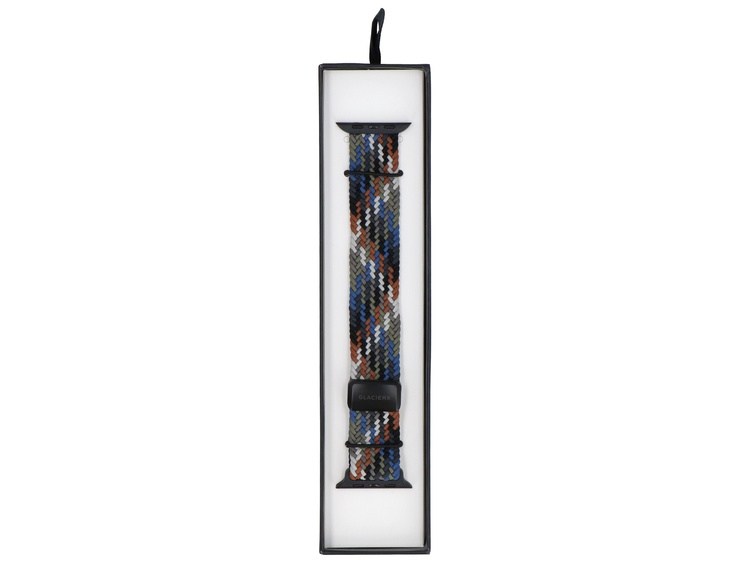 Pletený pásek GlacierX, určený pro Apple Watch 42/44/45/49mm. Díky magnetickému zapínání a vysoké elasticitě pásku je možné přesně ho přizpůsobit zápěstí. Produkt nový, vícebarevný - Terra Flame.
