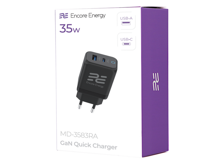 Nová síťová nabíječka GaN PD 3.0 Quick Charge 4.0 USB-A USB-C 35W Encore Energy MD-3583RA