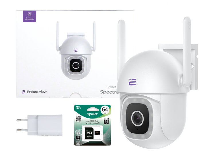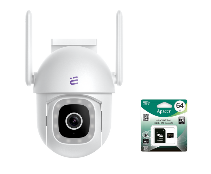 Neu WiFi PTZ Smart Kamera 4Mpx FHD Vollfarbe Nachtsicht IP65 Spectra 200 Encore View + 64GB Apacer Secure Digital Karte microSDXC Speicherkarte