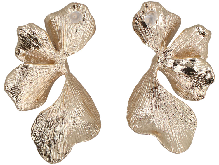 Ginkgo - große Ohrringe in Form von goldenen Ginkgo-Blättern beeindrucken mit ihrem modernen Design. Die zarte Textur und der goldene Glanz verbinden die Inspiration aus der Natur mit einer modernen, dynamischen Form.
