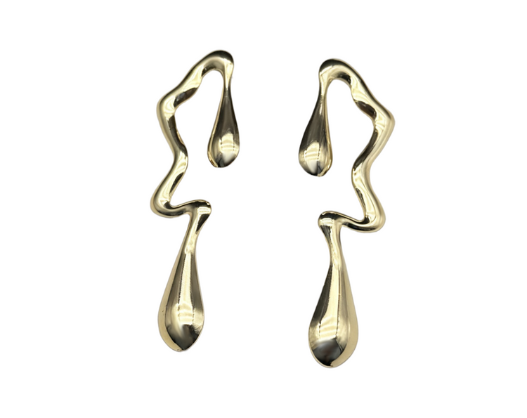 Tropfen – lange, steife Ohrringe in Goldfarbe, die die Form einer erstarrten Tropfen von geschmolzenem Metall erinnern. Ideal für Personen, die Eleganz in modernem Design lieben.