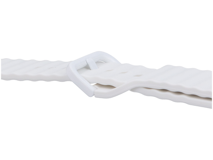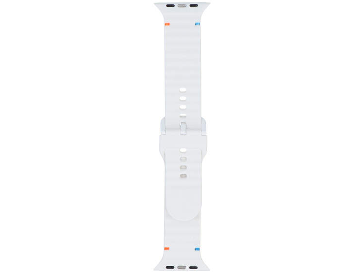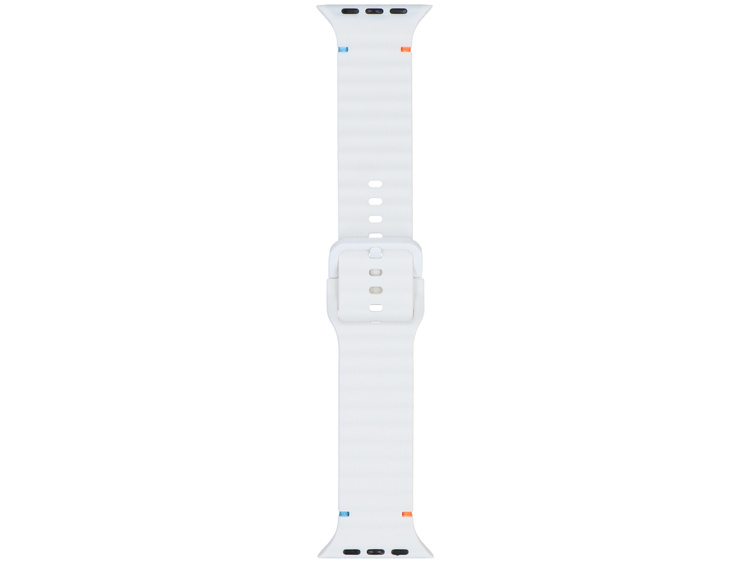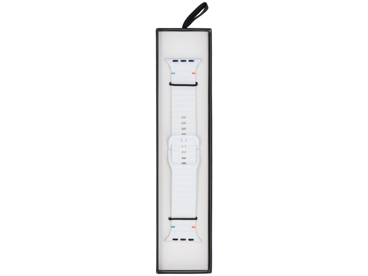 Silikonarmband GlacierX, der für die Apple Watch 42/44/45/49mm mit einer klassischen Schnalle in der Farbe des Armbands konzipiert ist. Weiß mit einer auffälligen gerippten Textur.