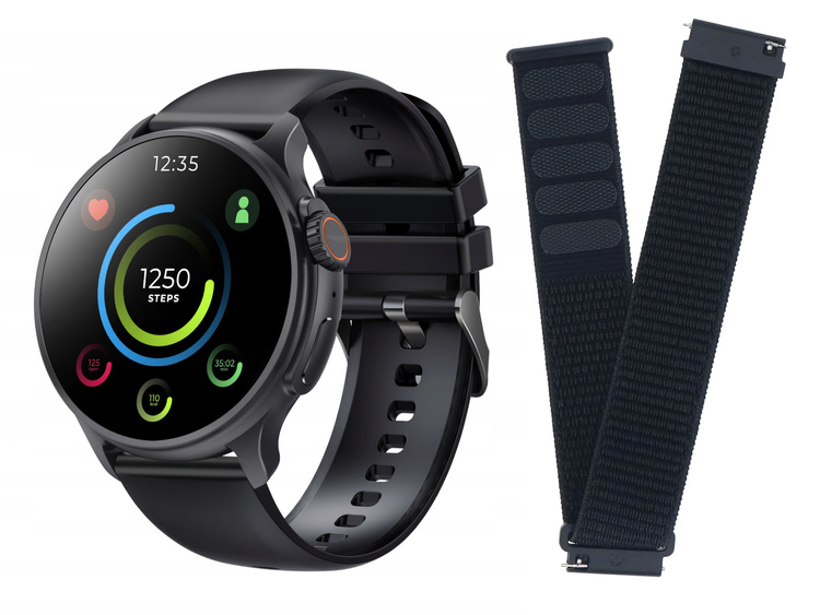 Neuer Smartwatch GlacierX Aura Black + Armband für Smartwatch GlacierX Grip Strap Nylon Schwarz 22mm
