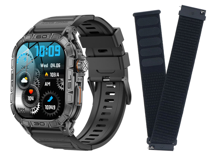 Neuer Smartwatch GlacierX Lhotse Black + Band GlacierX Grip Strap Nylon Schwarz 22mm