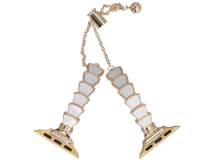 GlacierX-Armband, speziell für Apple Watch 38/40/41mm, im Stil eines Armreifs. Schiebeschnalle, hergestellt aus Gliedern mit Perlmuttfüllung, gold-weiße Farbe.