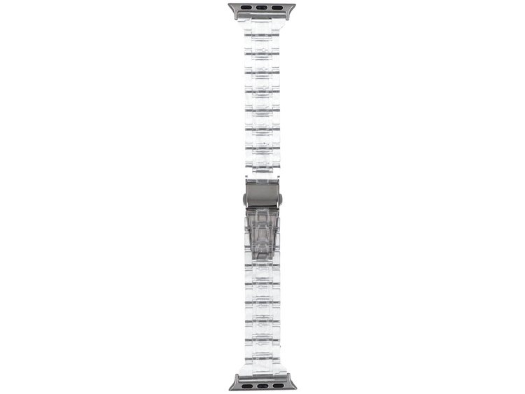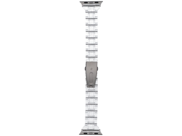 Die GlacierX-Armbanduhr ist für die Apple Watch 38/40/41mm bestimmt und wird mit einer Schmetterlingsschließe verschlossen. Sie besteht aus transparenten, acrylischen Gliedern.
