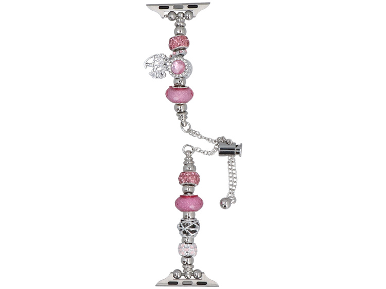 Neue Armbanduhr GlacierX Slider Clasp Beaded Charm Bracelet Magenta Glow für Apple Watch 38/40/41mm Silber-Magenta
