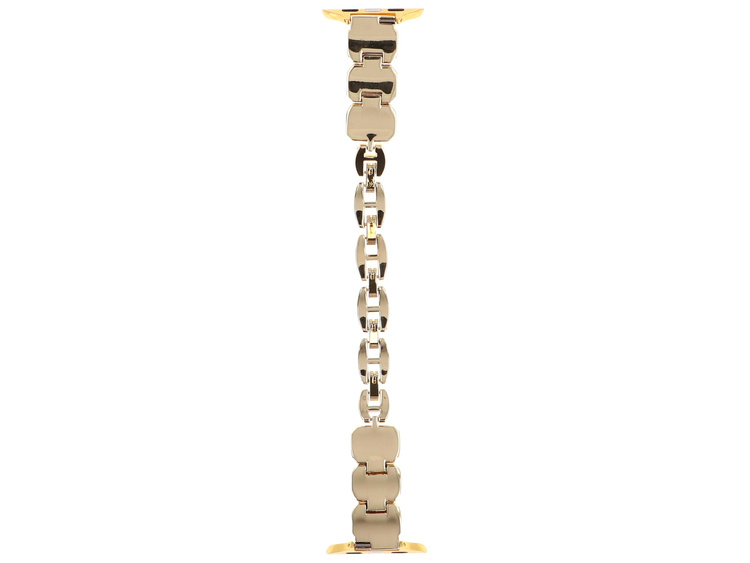 Die Gliederarmband GlacierX ist für die Apple Watch 38/40/41mm gedacht. Farbe Gold, mit Zirkonia verziert. Die Länge ist durch vier abnehmbare Glieder verstellbar. Produkt neu, in der Originalverpackung verpackt.