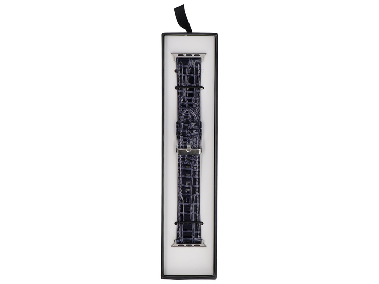 Lederarmband GlacierX für Apple Watch 38/40/41mm. Hergestellt aus lackiertem Leder mit zartem Glanz, mit einer klassischen Schnalle. Produkt neu, Farbe marineblau mit lila Glanz - Midnight Blue.