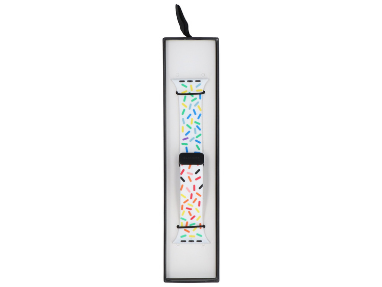 Silikonarmband GlacierX, speziell für Apple Watch 42/44/45/49mm. Dank des verstellbaren, magnetischen Verschlusses ist eine präzise Anpassung an das Handgelenk möglich. Produkt neu, Farbe weiß mit buntem Muster White Confetti.