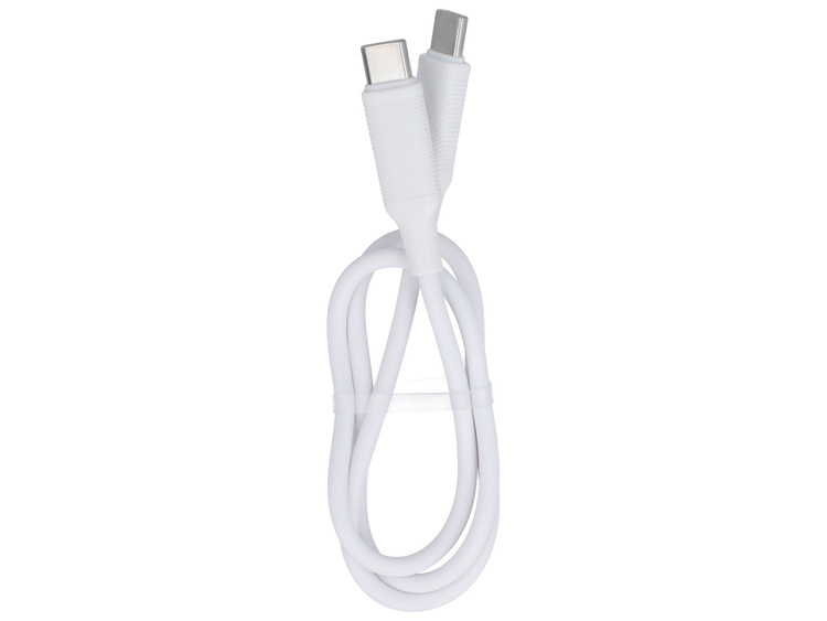 Encore Energy USB cable supporting PD standard. Flexible cable for charging and data transfer with two USB Type-C connectors. Length 50 cm, color white. Designation MD-60CC05W.