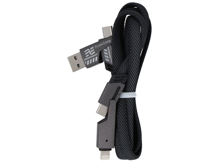New Encore Energy 4-in-1 USB-C USB-A Lightning 3A flat braided cable QC PD 60W for charging and data transfer 100 cm EE155