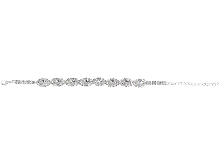 Charming is jewelry that attracts attention with its vivid shine. Stud earrings, paired with a bracelet and a necklace featuring a row of large cubic zirconias, subtly surrounded by smaller stones. Silver color.