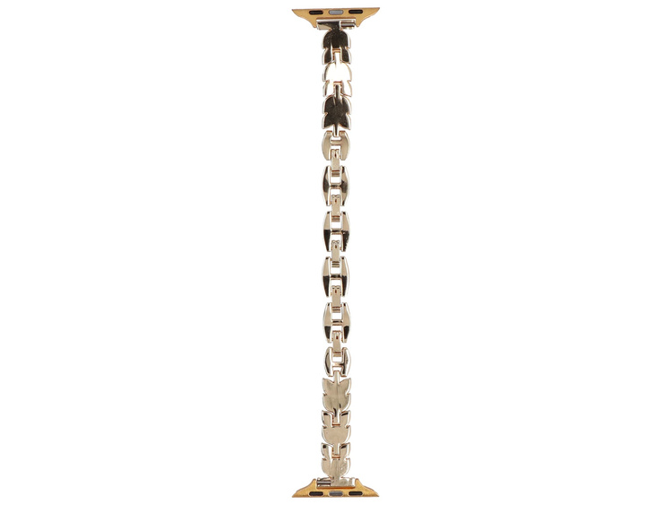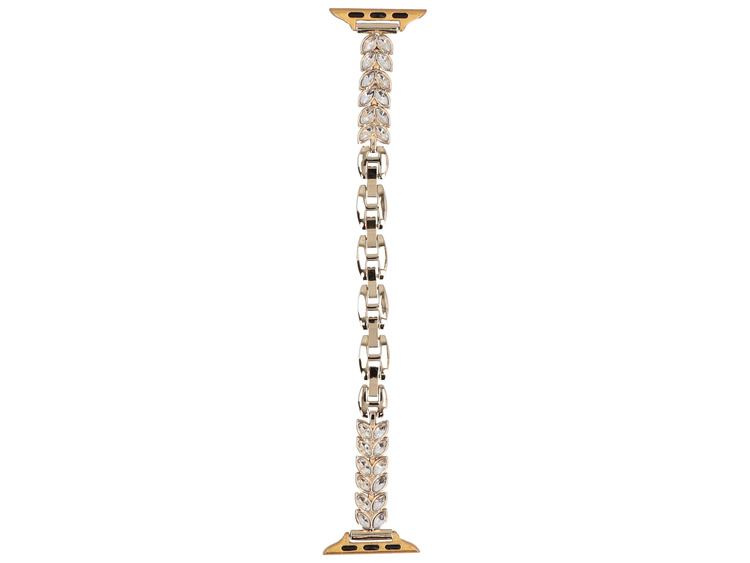 GlacierX chain bracelet dedicated to Apple Watch 38/40/41mm. Gold color, adorned with zirconia. Length adjustable through detachable links. Product new, packaged in original packaging.