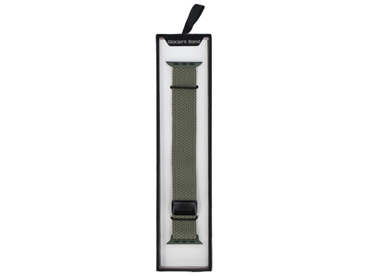 Braided strap GlacierX, dedicated to Apple Watch 42/44/45/49mm. Thanks to the magnetic clasp and high flexibility of the strap, precise adjustment to the wrist is possible. Brand new product, color dark green Dark Olive.