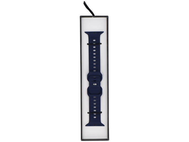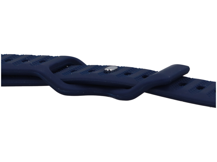 GlacierX silicone strap dedicated to Apple Watch 42/44/45/49mm with a pin buckle. Navy striped with a decorative texture.