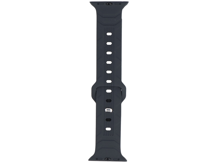 GlacierX silicone strap dedicated to Apple Watch 38/40/41mm with a pin buckle. Dark gray with a decorative texture.