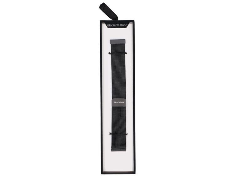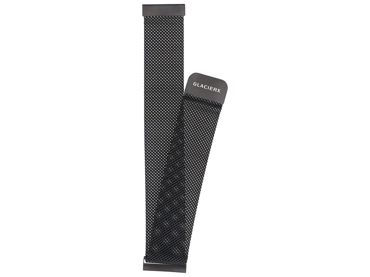 Mesh bracelet for GlacierX smartwatch / Milanese. The magnetic clasp allows for precise adjustment to the wrist. New product, packaged in original packaging. Black color, width 22 mm.