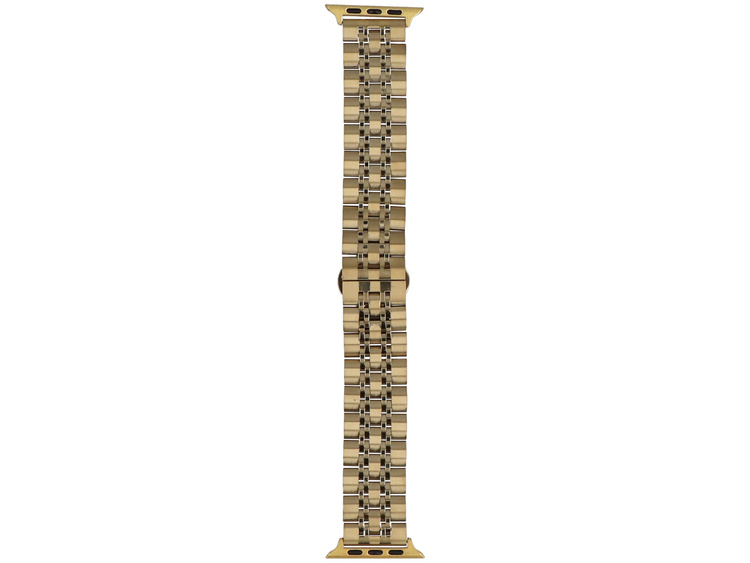 GlacierX bracelet dedicated to Apple Watch 42/44/45/49mm, fastened with a butterfly clasp. Made of links of varying widths, color gold.