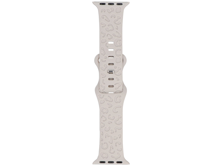 GlacierX silicone strap, dedicated to Apple Watch 38/40/41mm, with a pin buckle. Creamy with a subtle animal pattern.