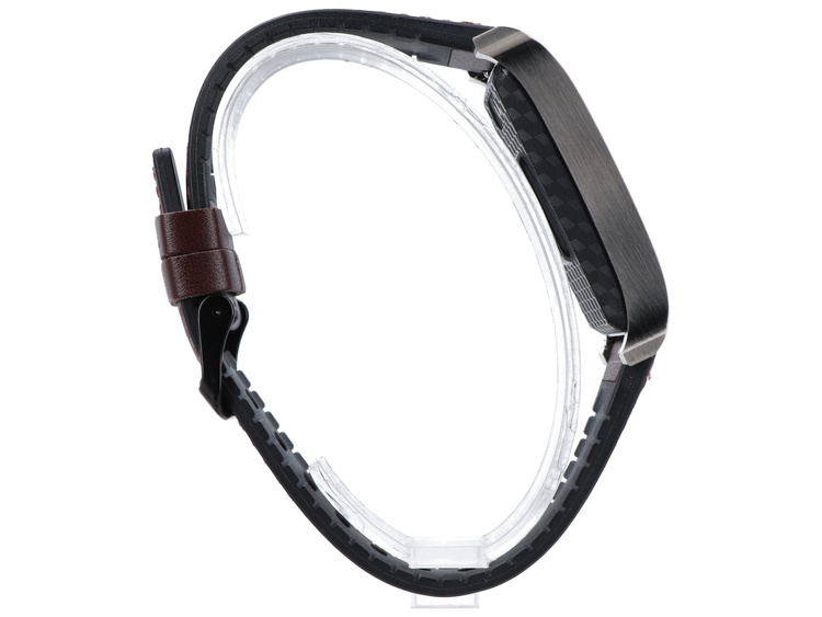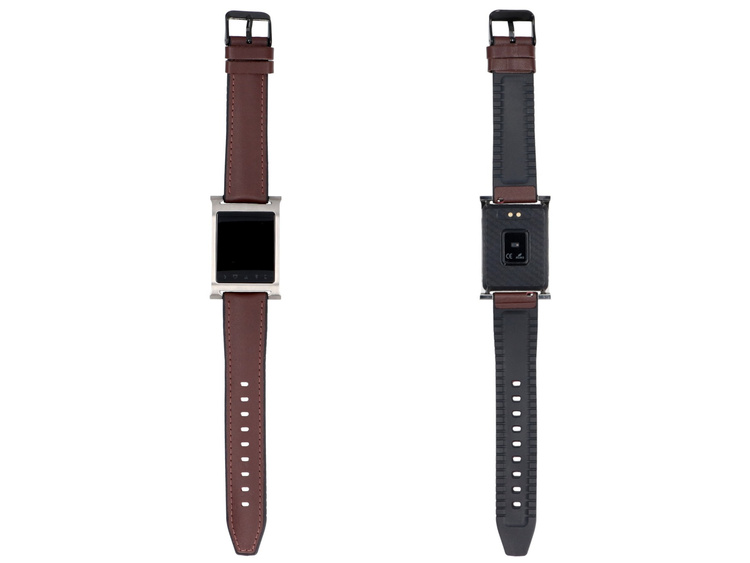 GlacierX Vario Silver Smartwatch. The metal case with a geometric shape and defined lines, combined with a brown leather strap, gives this model a classic elegance. Product code GX-VS06.