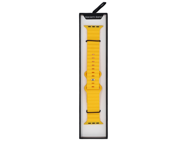 GlacierX silicone strap, dedicated to Apple Watch 42/44/45/49mm. Textured, adjustable with a sliding clasp with a tongue. Brand new product, color yellow Sunburst.