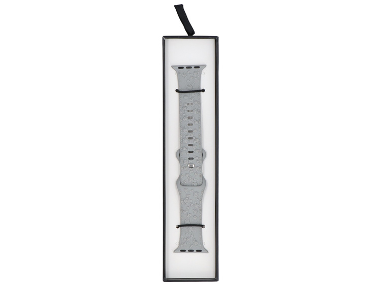 GlacierX silicone strap, dedicated to Apple Watch 38/40/41mm, in gray with a decorative texture. Slip-on clasp with a tongue. Product new.