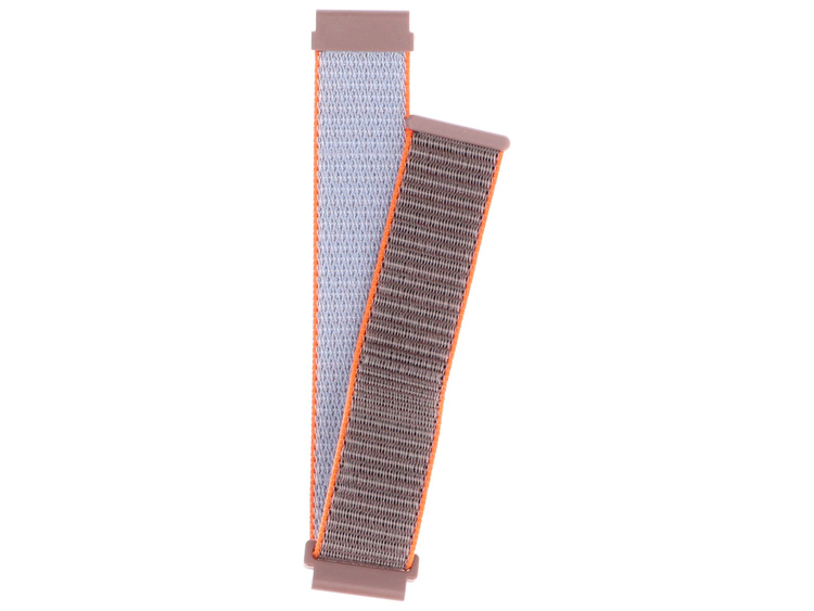 GlacierX nylon strap for smartwatch in brown-gray color, with contrasting orange edges. Product is new, packaged in original packaging. Width 22 mm, fastened with Velcro.