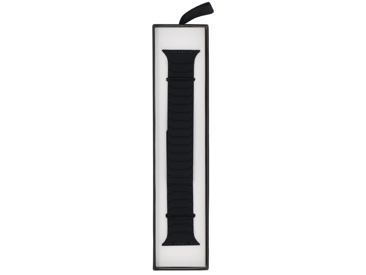 GlacierX silicone strap, dedicated to Apple Watch 42/44/45/49mm. Magnetic band with cross stripes. Color Black.