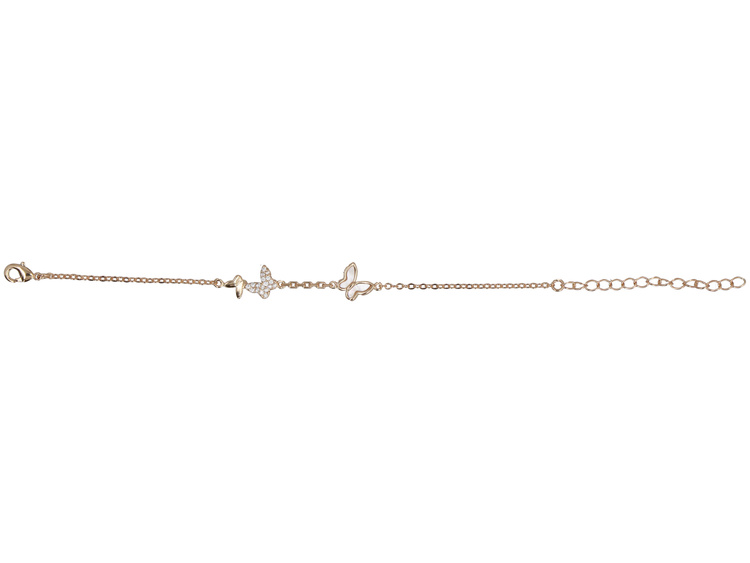 Romantic - classic bracelet with a subtle composition of three butterflies. Shiny zirconia adorning one of the pendants adds a unique sparkle to the whole. This elegant accessory will highlight the lightness of any outfit.