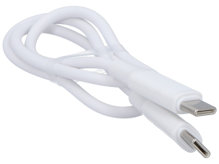 Cable USB Encore Energy que soporta el estándar PD. Cable flexible para carga y transferencia de datos con dos conectores USB tipo C. Longitud 50 cm, color blanco. Designación MD-60CC05W.