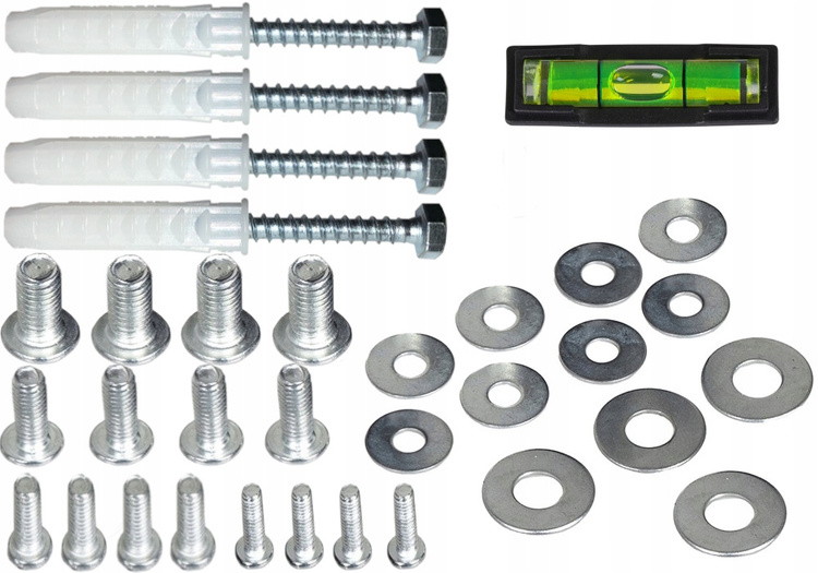 Nuevo soporte de pared sin usar, destinado a la instalación de un televisor de hasta 50 kg (máx. 70 pulgadas). Distancia máxima entre tornillos - 600x400 mm. El soporte cuenta con un nivel que facilita la correcta colocación de la pantalla.