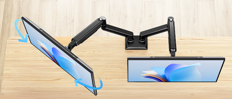 Triadyn DuoFlexMount es un moderno soporte para dos monitores de hasta 32”. El resorte de gas y la amplia regulación permiten colocar las pantallas en la posición ideal, y la gestión de cables mantiene el orden, creando un puesto de trabajo ergonómico y e