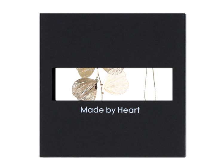 Flora - collar espacioso con cadenas terminadas en bolitas y colgantes con formas inspiradas en la naturaleza. Su construcción calada añade ligereza y un brillo sutil a la estilización. Se combina perfectamente con los pendientes de la colección Flora y F