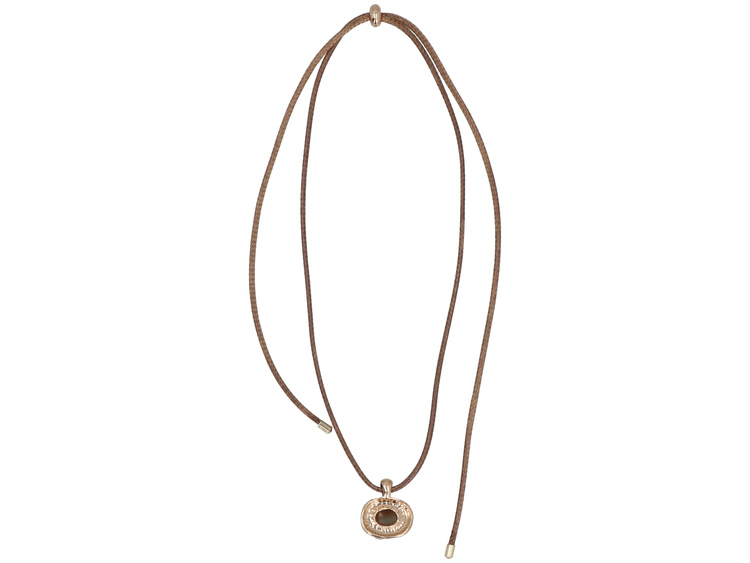 Ternura - collar minimalista con un colgante de bronce dorado sobre un cordón marrón encerado. Su forma interesante y su paleta de colores naturales crean una composición que emana tranquilidad y armonía.