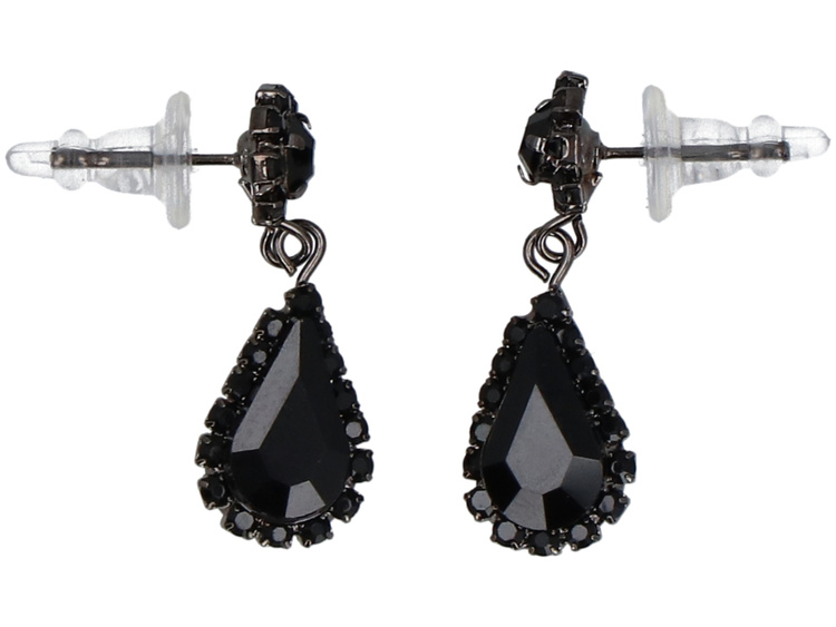 El gótico es un conjunto de joyería expresivo creado para las amantes de los acentos más fuertes. El collar y los pendientes de presión, adornados con circonitas negras, terminan con una gran piedra en forma de gota. Un conjunto que añade un brillo mister