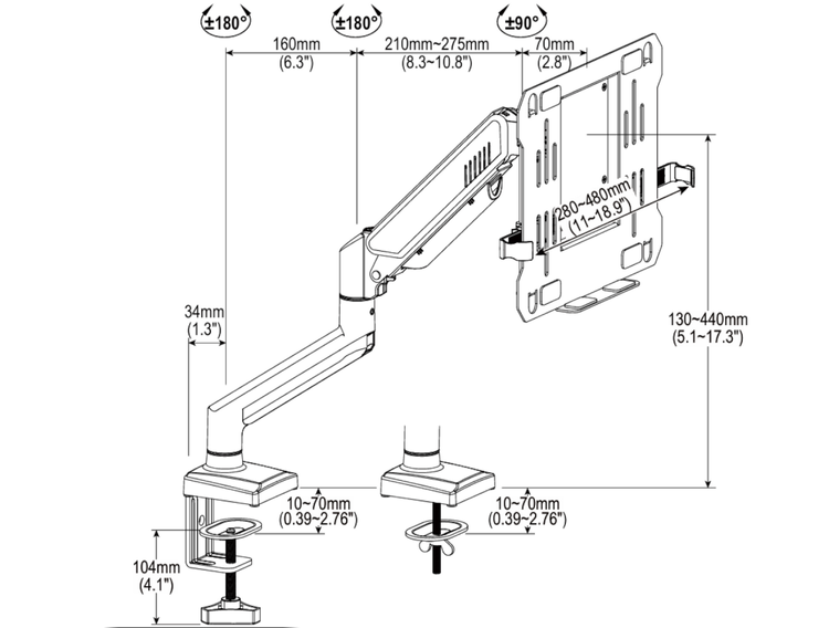 Posibilidad de montar un ordenador portátil o un monitor con un peso de hasta 10 kg.