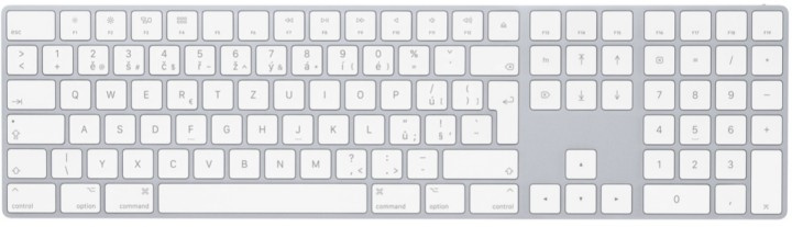 Teclado original Apple Magic Numeric Keypad. Distribución de teclas QWERTZ (Checa). Teclado empaquetado en su embalaje original. La caja puede estar abierta. Imágenes de referencia.