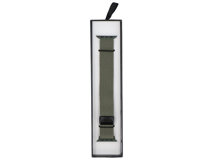 Cinturón trenzado GlacierX, dedicado a Apple Watch 42/44/45/49mm. Gracias al cierre magnético y a la alta elasticidad del cinturón, es posible ajustarlo con precisión a la muñeca. Producto nuevo, color verde oscuro Dark Olive.